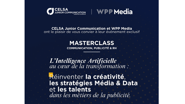 Intéressés par l'impact de l'Intelligence Artificielle sur les métiers de la publicité, inscrivez-vous vite à la masterclass organisée par CELSA Junior Communication et WPP Media !